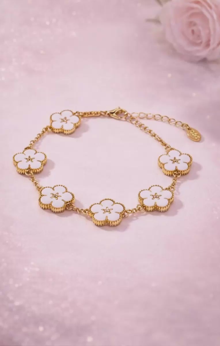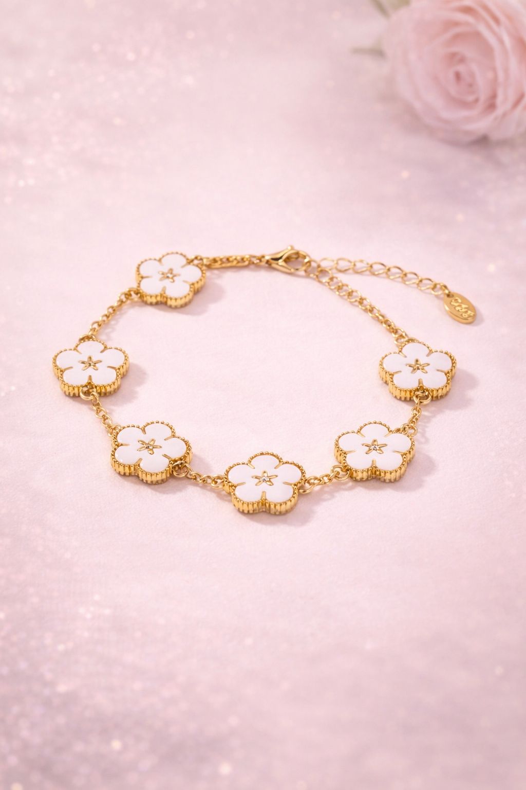 • Matière : Acier inoxydable• Couleur : Doré & blanc• Motifs : Trèfle• Résistant à l’eau• Fermoir sécurisé• Longueur ajustable• Idéal à offrir