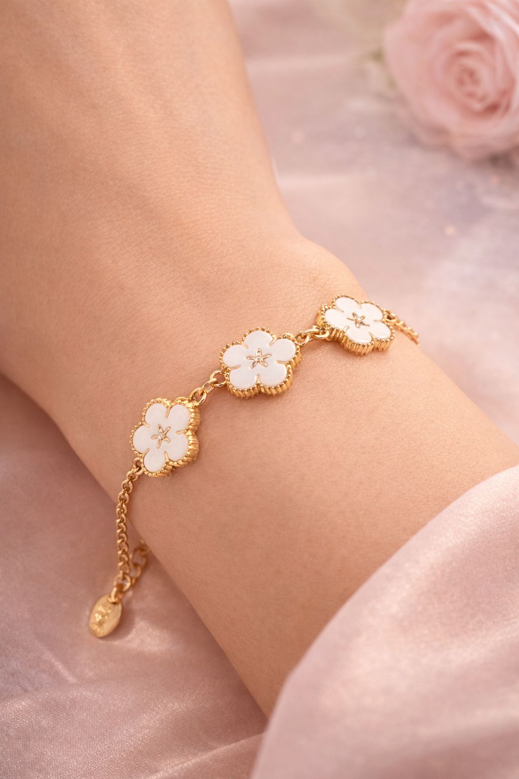 Inspiré par la symbolique du trèfle, ce bracelet apporte une touche d’élégance subtile à toutes vos tenues.